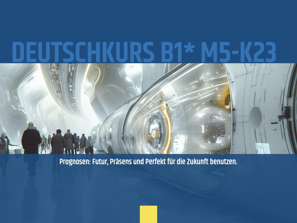 Dieses Kapitel widmet sich der Zukunft mit Zukunftsplänen, Studium, Zukunftsvisionen in den Bereichen Technik, Medizin, Energie und Arbeitsmarkt, sowie Endzeitszenarien. Die Strukturen umfassen die Verwendung von Präsens und Perfekt für Zukünftiges und das Futur I (wobei das Futur II nur der Vollständigkeit halber aufgeführt ist und nicht systematisch behandelt werden soll). Die sprachlichen Handlungen sind das Beschreiben zukünftiger Ereignisse, das Äußern von Zukunftsprognosen, das Äußern von Vermutungen und Versprechen, das Diskutieren und das Halten einer kurzen Präsentation.